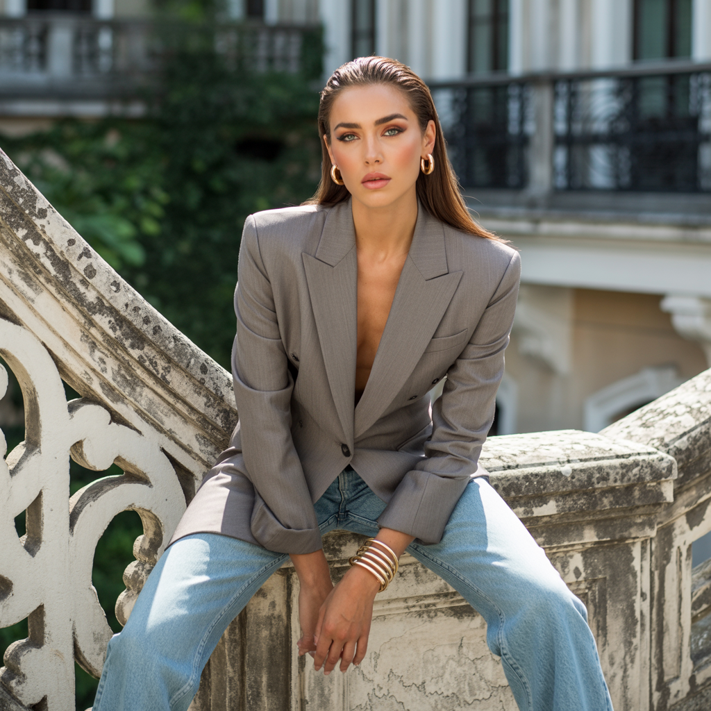 Women’s Double-Breasted Wool Blend Blazer Coat – Classic Longline Jacket